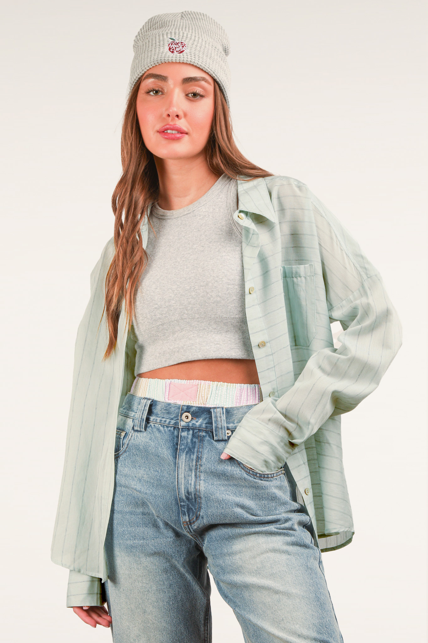 PLUS SIZE Mineral Washed Colorblock Striped Shirt